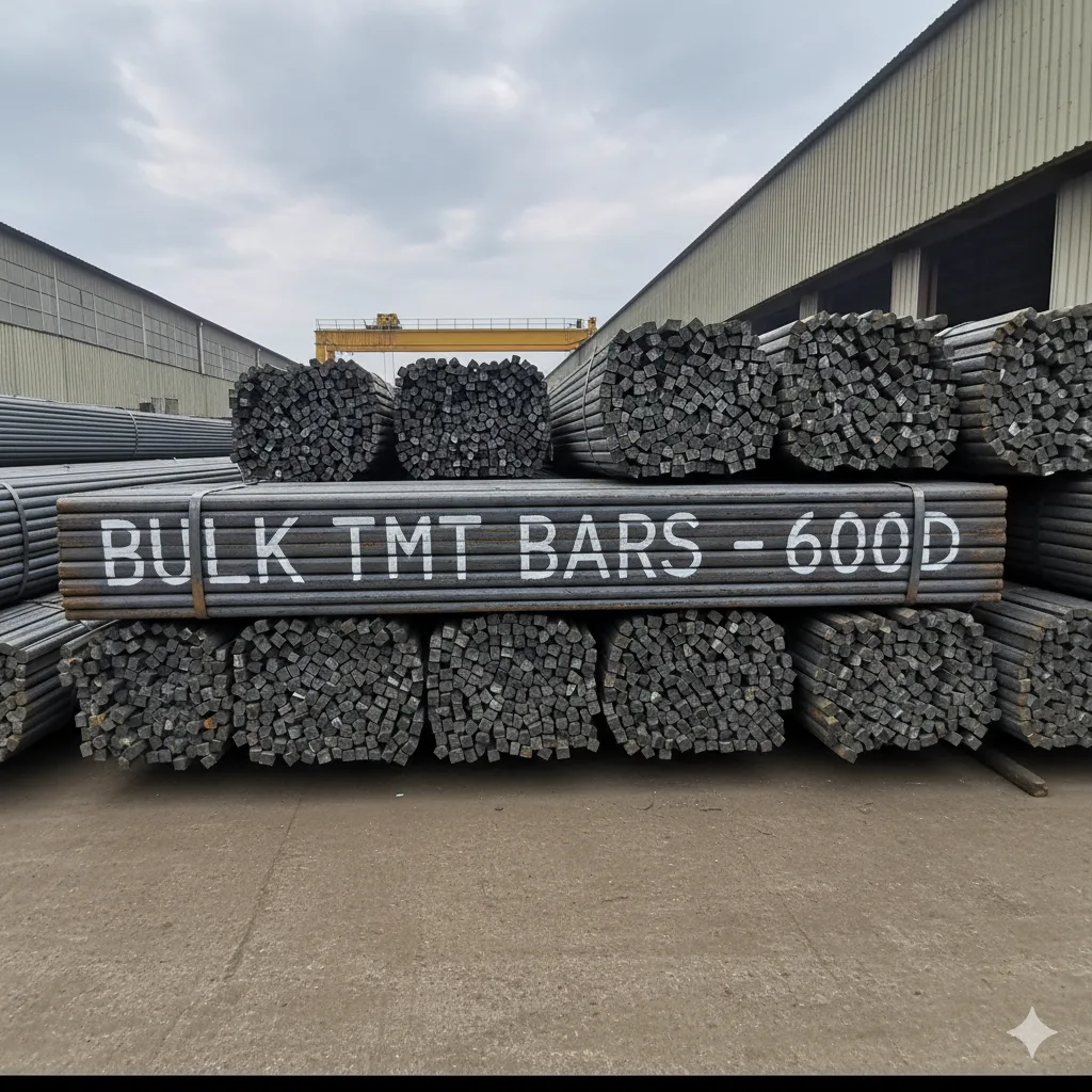 High-strength 600D TMT bars available in bulk for large-scale construction projects, ensuring maximum durability and safety.